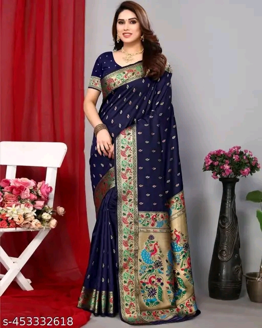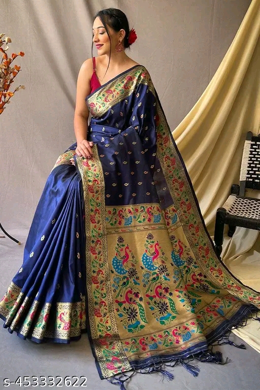 Name: Paithani and Kanchipuram silk fully Jacquard woven saree, paired with unstitched blouse piece